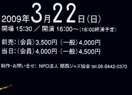 | 関西ジャズ協会がお届けする、春のジャズサミット第二弾! 時には繊細に、時にはグルーヴィーにダイナミックに! 精鋭のトランぺッター4人が奏でる アンサンブルの妙と色彩感をお楽しみください! |